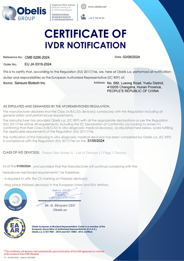 近日,yabo鸭脖官网生物自主研发的结核分枝杆菌核酸检测试剂盒(PCR-荧光探针法)获欧盟CE IVDR认证,这是公司呼吸道产品获得的首个Class C级别的准入证书,为公司结核产品的全球布局提供了有力支持,也为全球在2030年前消灭结核的目标贡献了“yabo鸭脖官网力量”。